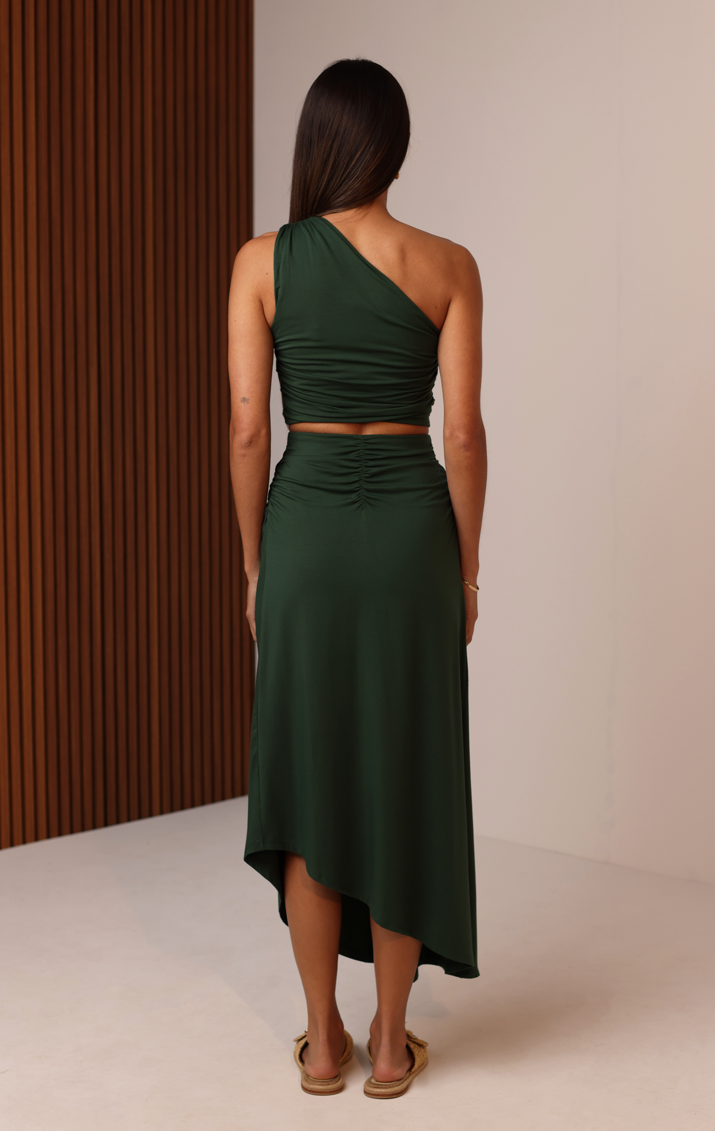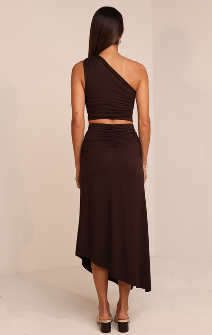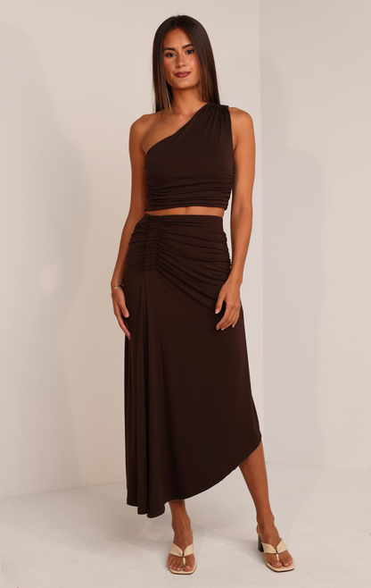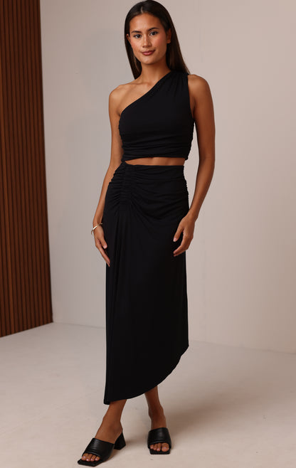 Sleek and modern, this one-shoulder crop top is cut from our signature soft Jersey fabric for a look that’s as comfortable as it is flattering. The asymmetrical neckline adds a bold touch, while subtle ruching creates a body-skimming fit that moves with you. Lightweight, breathable, and endlessly versatile, it’s the perfect top to take from day to night — pair it with denim for casual outings or style it with the matching skirt for an effortlessly elevated set.